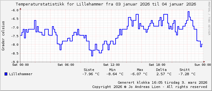 GjennomsnittsTemp -7°C (143 avlesninger)