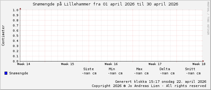 | Laveste temperatur | 0.2°C | 06:05 fredag 03 april | 2.8°C | 05:55 lørdag 26 april | -1.7°C | 19:35 torsdag 04 april |